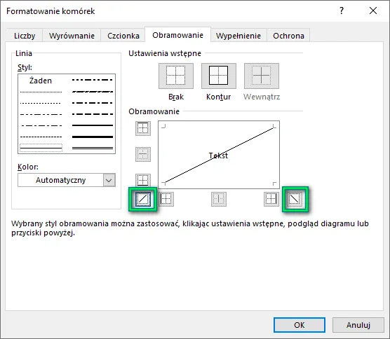 | Prawy przycisk myszy | Przesuwa komórki w dół lub w prawo, co może zmienić układ danych. |