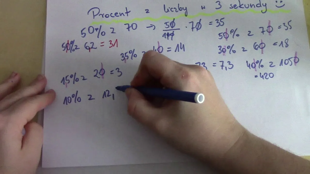 Obliczanie procentów ze sprawdzianu jest umiejętnością, która może być bardzo przydatna w edukacji. Aby uzyskać wynik procentowy, wystarczy podzielić liczbę uzyskanych punktów przez maksymalną liczbę punktów i pomnożyć przez 100. Na przykład, jeśli zdobyłeś 36 punktów na 40 możliwych, wynik procentowy wyniesie 90%. Warto znać tę metodę, ponieważ pozwala ona szybko ocenić swoje osiągnięcia w nauce.