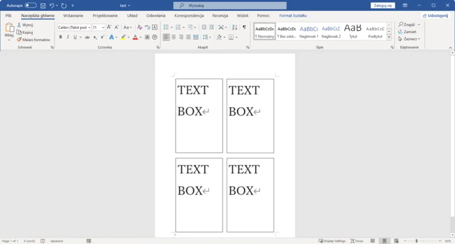 Jak podzielić stronę w Wordzie na 4 równe części za pomocą tabeli