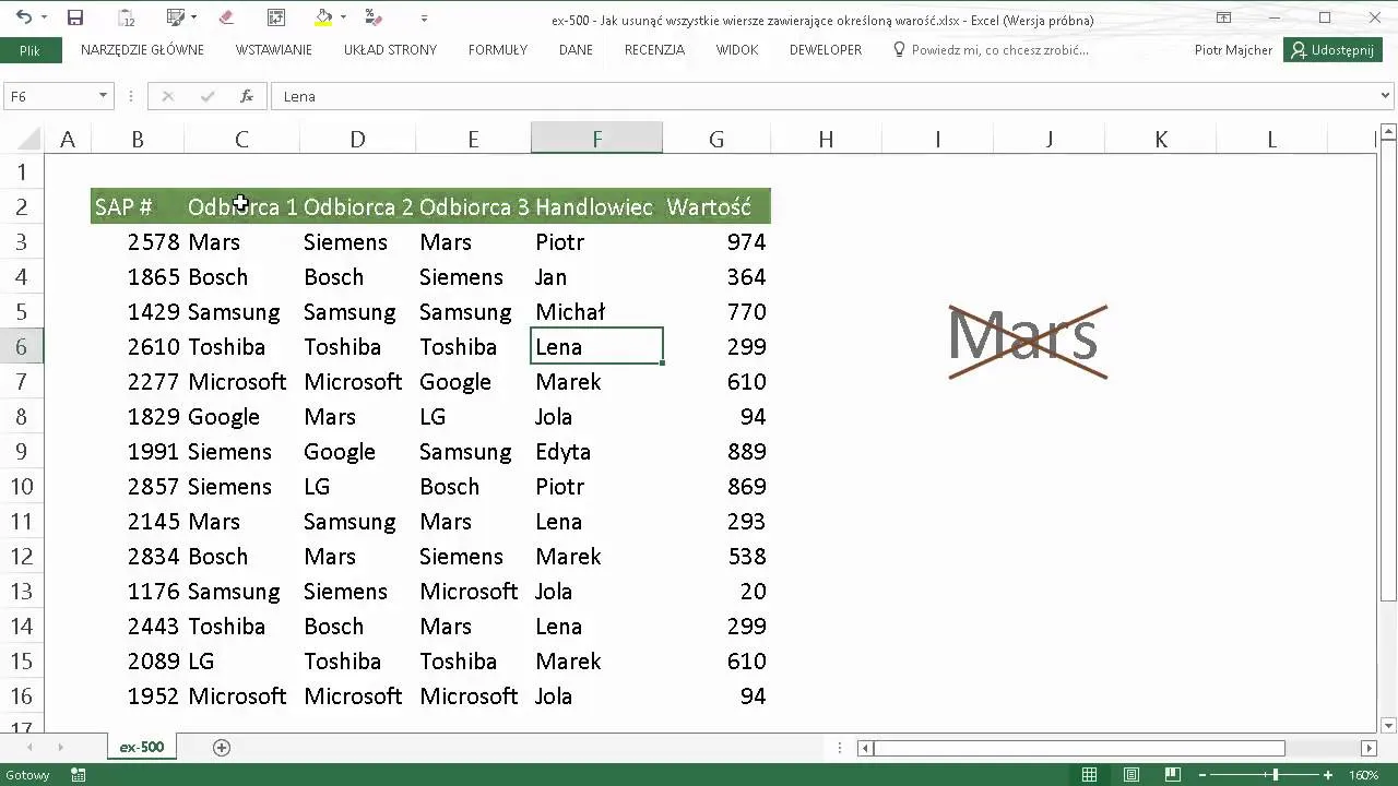 Tworzenie i uruchamianie makra VBA do usuwania wierszy