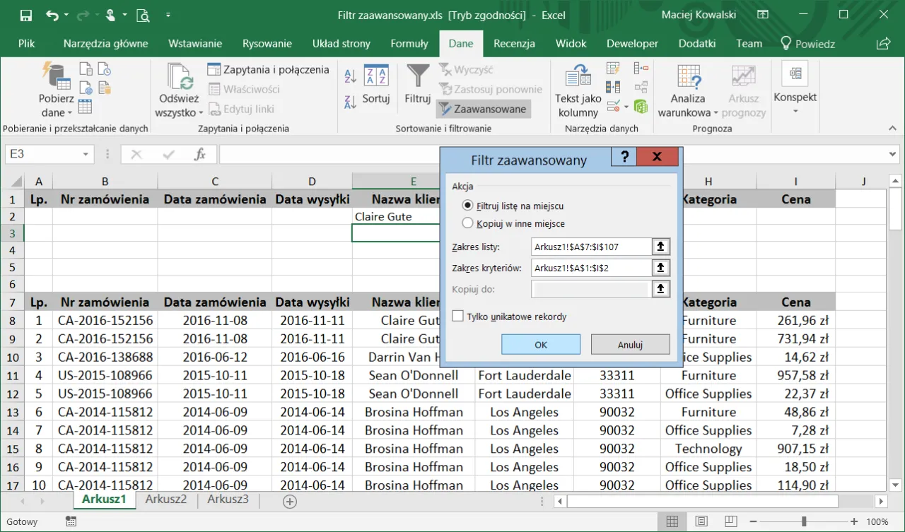 Rozwiązywanie problemów z filtrami w Excelu