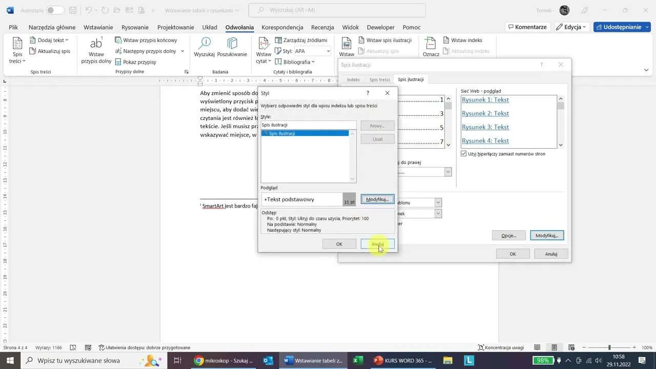 Krok po kroku: Wstawianie spisu ilustracji w dokumencie